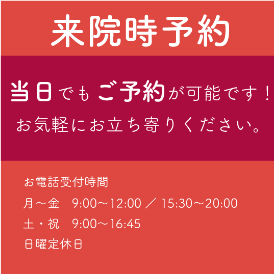 昼休みなしの「通し営業」となり、よりご予約が取りやすくなります。<受付時間変更>